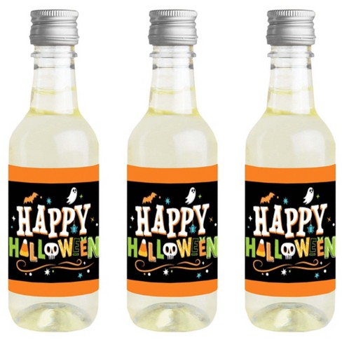 Big Dot of Happiness Jack-O'-Lantern Halloween - Mini Wine & Champagne Bottle Label Stickers - Halloween Party Favor Gift for Women & Men - Set of 16